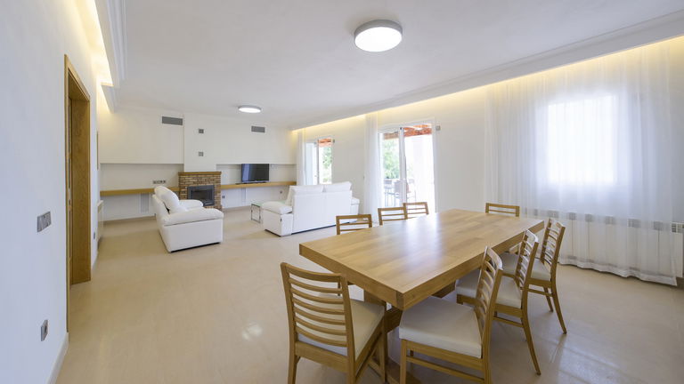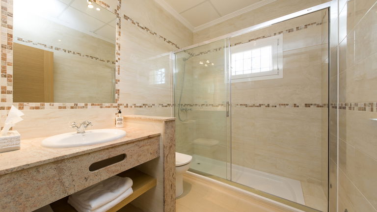 Las habitaciones vienen equipadas con una cama de matrimonio o dos individuales (a elegir en todas las habitaciones). Además, todas las habitaciones constan de Aire Acondicionado/calefacción individual, TV analógica y por satélite (con Netflix e Internet incluidos),armario, escritorio y espejos. En el piso inferior, una de las habitaciones tiene baño propio, otro lo tiene al lado y cada una de las habitaciones del piso superior también dispone de baño propio.