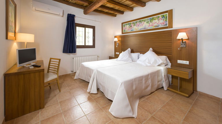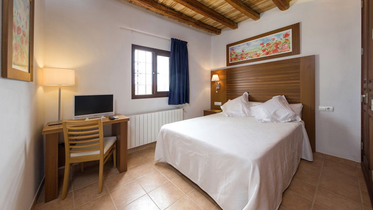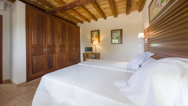 Las habitaciones vienen equipadas con una cama de matrimonio o dos individuales (a elegir en todas las habitaciones). Además, todas las habitaciones constan de Aire Acondicionado/calefacción individual, TV analógica y por satélite (con Netflix e Internet incluidos),armario, escritorio y espejo. En el piso inferior, una de las habitaciones tiene baño propio, otro lo tiene al lado y en las dos habitaciones del piso superior existe un baño grande compartido.